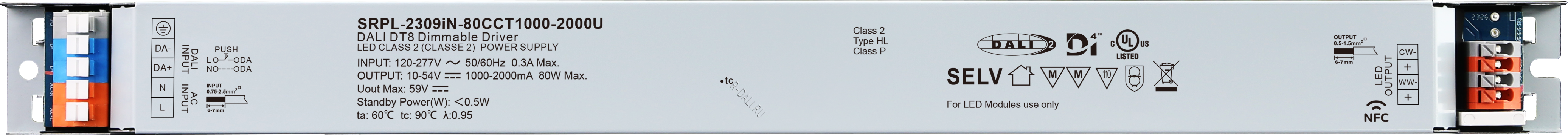 120-277VAC 80W DALI D4i DT8 NFC LED Driver (Constant Current) SRPL-2309iN-80CCT1000-2000U