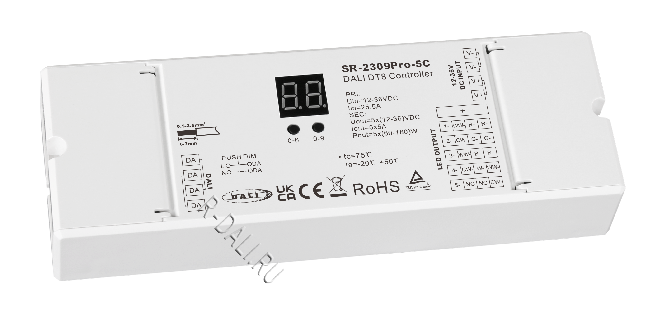 - Built-in DALI-2 interface, DALI DT8 device