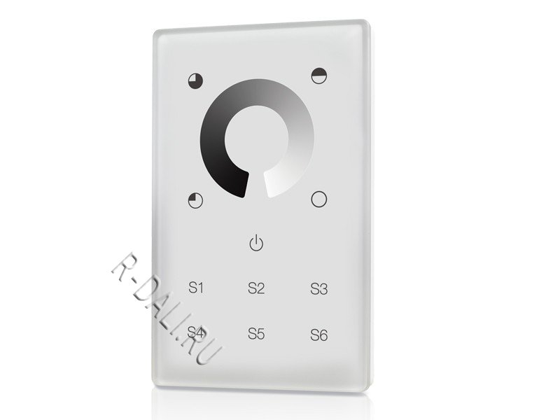 The DALI master SR-2300TR-DIM is a touch DALI dimmer which adopts high strength and ultra sensitive tempered glass panel to offer accurate and fast brightness adjustment functions to control single color LEDs, the LED controller complies to IEC 62386-102, IEC 62386-207 and can be compatible with DALI products from other international corporations. The touch color wheel enables smooth brightness adjustment. The DALI master can control 1 DALI address and 4 DALI scenes (EU Version) or 6 DALI scenes (US Version). It enables to set the DALI address number (total 64 addresses from 0-63) to be controlled by rotary switches on the back. Europe and US versions are both available and easy to be installed into existing standard size wall box.