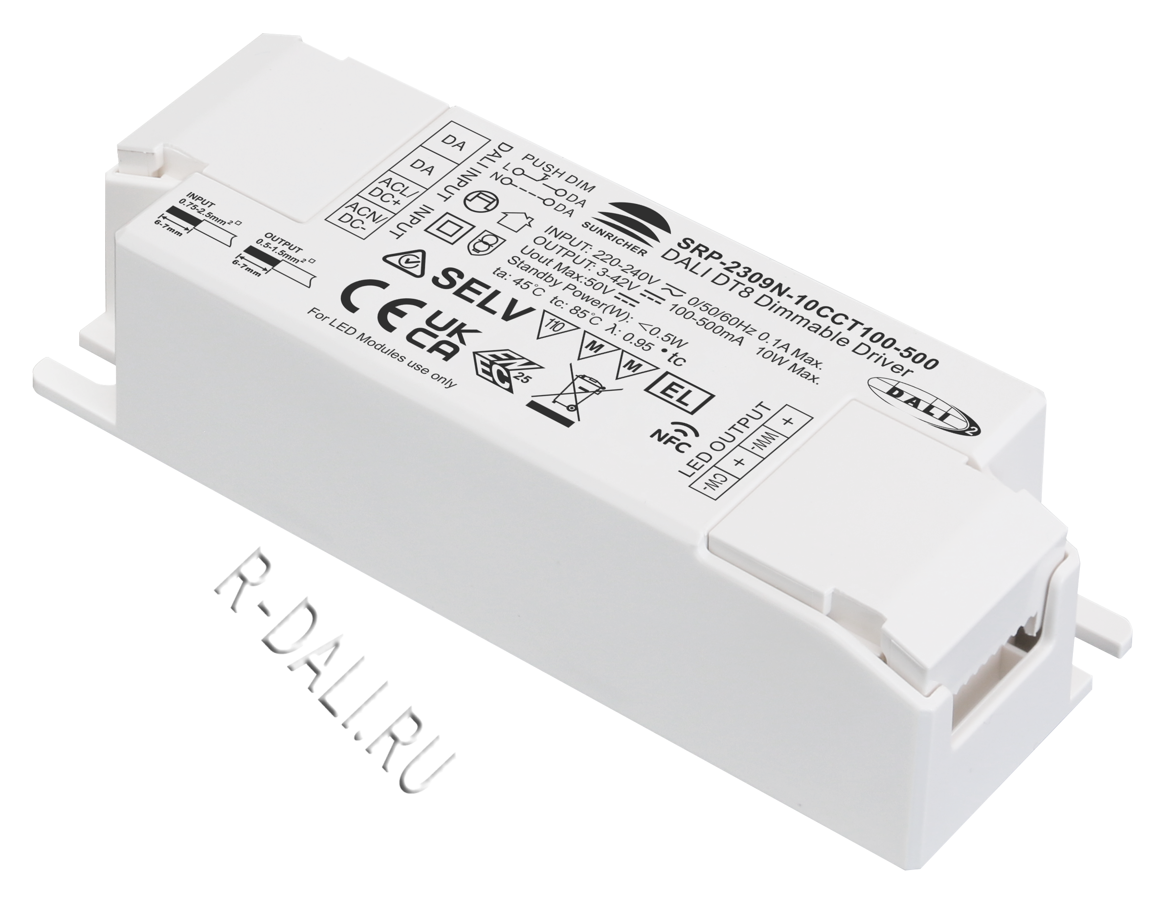 Sunricher, Дравер DALI (CC), 10W NFC Programmable DALI DT8 LED Driver, SRP-2309N-10CCT100-500