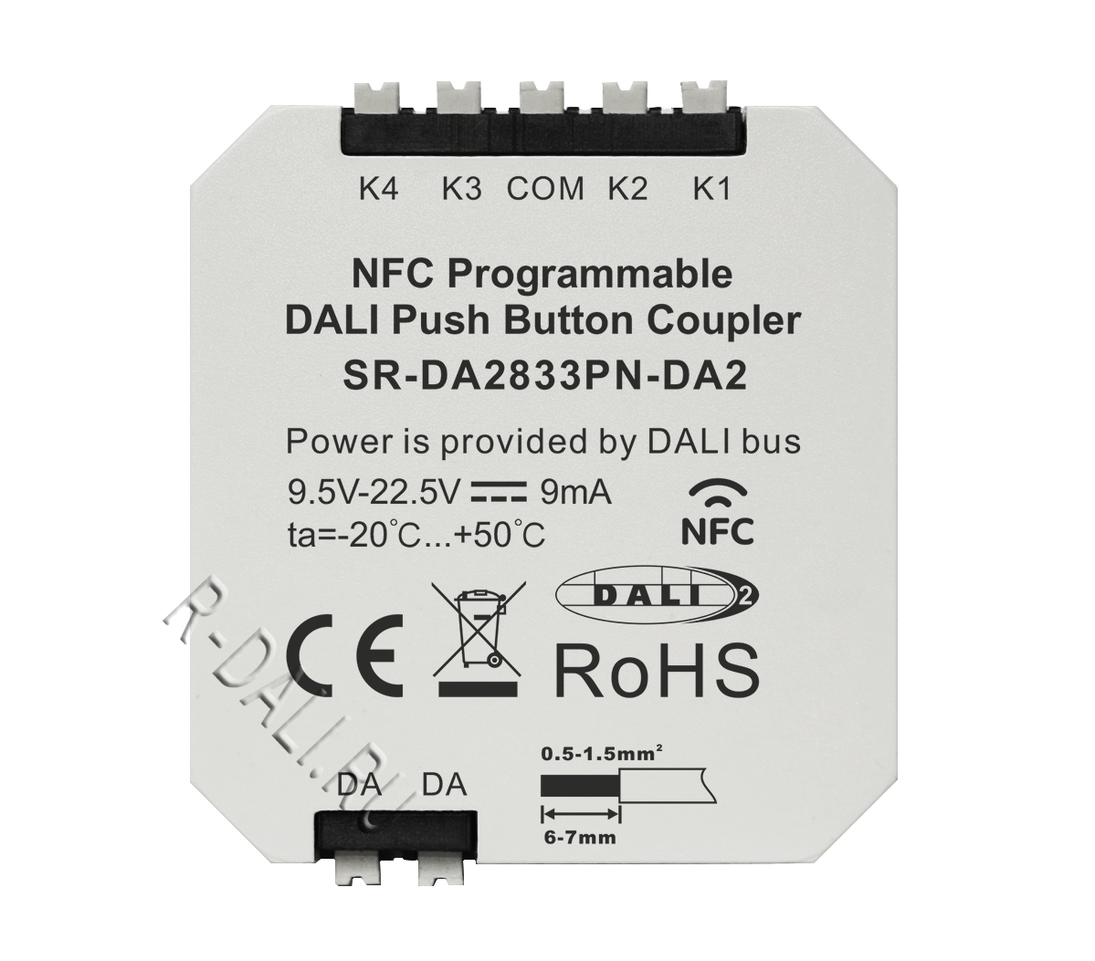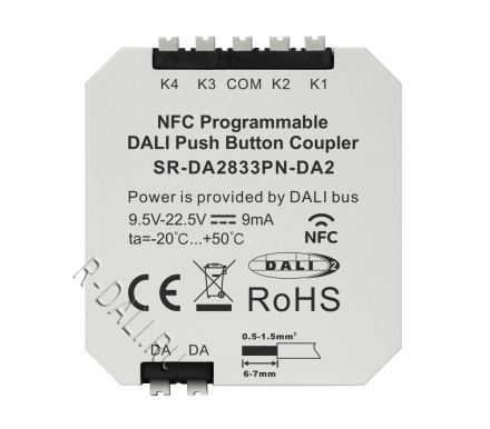 Sunricher, Бинарный ввод, NFC Programmable 4-Key DALI DALI-2 Push Button Coupler SR-DA2833PN-DA2
