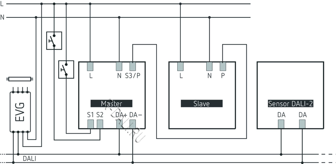 - Flexible assignment of up to 3 light groups towards one DALI line