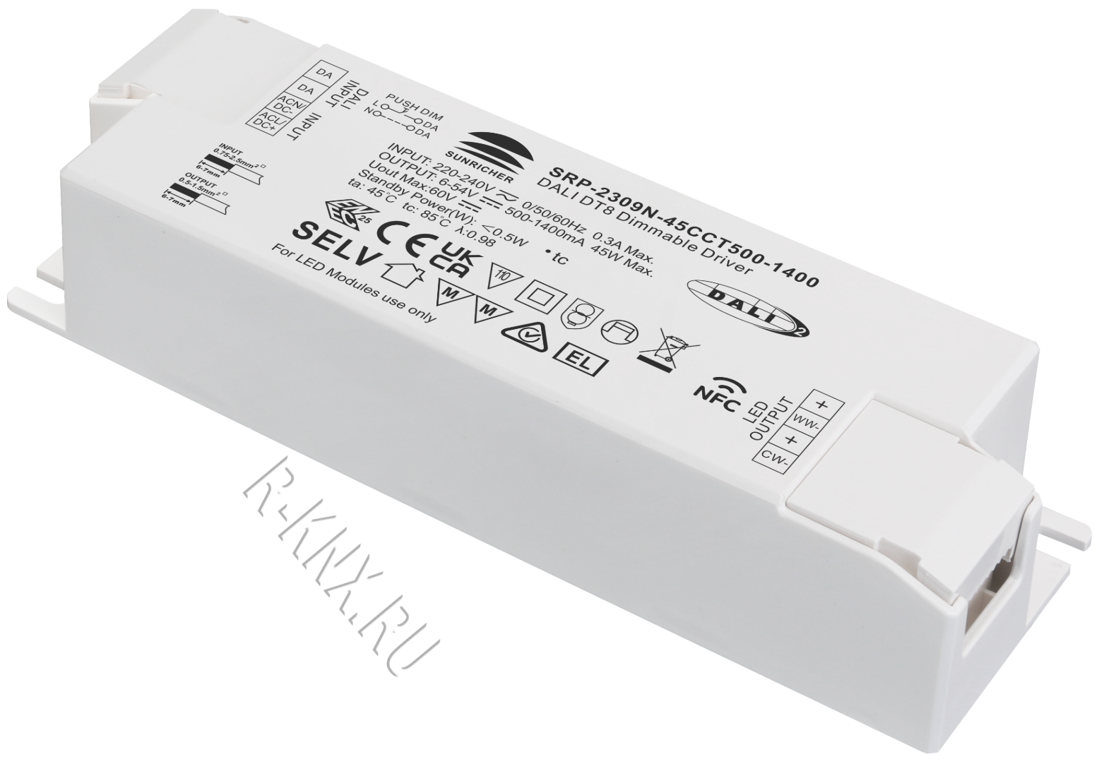 Sunricher, Дравер DALI (CC), 45W NFC Programmable DALI DT8 LED Driver, SRP-2309N-45CCT500-1400