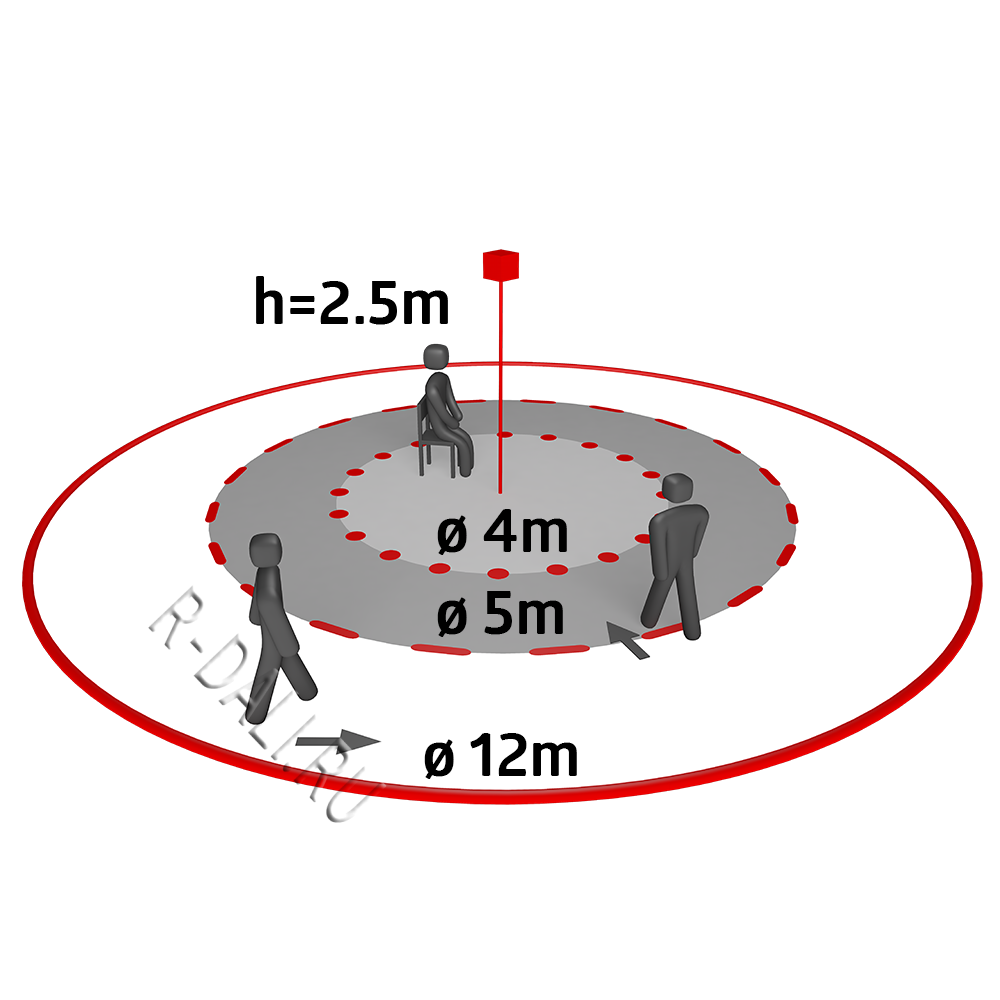 | Range: | max. Ø 12 m across max. Ø 5 m towards max. Ø 4 m seated |