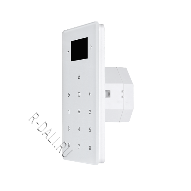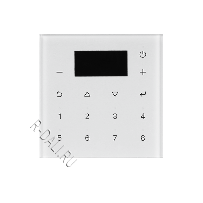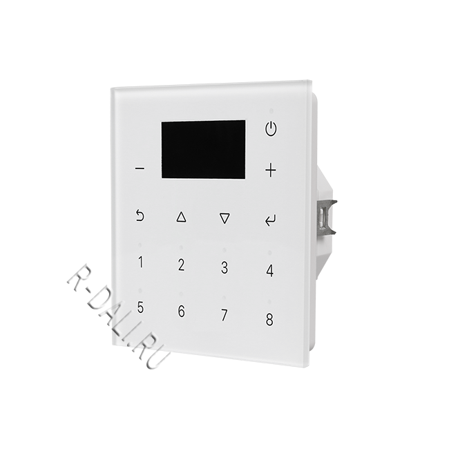 The DALI Master control panel SR-2300T-OLED is a central controller of a DALI system to control DALI control gears on the DALI line. It enables to automatically assign and manage addreses to up to 64 control gears. It supports 5 DALI control gear device types: DT6, DT8 Tc, DT8 XY coordinate, DT8 RGBWA, DT7 Switching actuator. It also supports DALI-2 type 301 push button input devices. It enables to set up to 16 DALI scenes for each control gear. It enables to assign each control gear to up to 16 DALI groups. It enables to set up to 256 timer tasks. It enables to set up to 4 types brightness fade and color fade cycle schedules. It enables to set up to 4 Bionic color temperature schedules for the CCT control gears. It is designed with PC configuration software tool, enables to configure and read parameters of the DALI control panel and control gears, and manage the control panel and control gears.