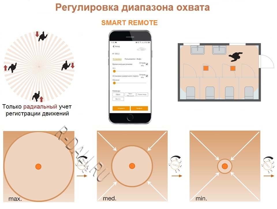 | Возможности регулировки, ограничение дистанции срабатывания | плавная электронная регулировка дальности действия с точностью до метра |