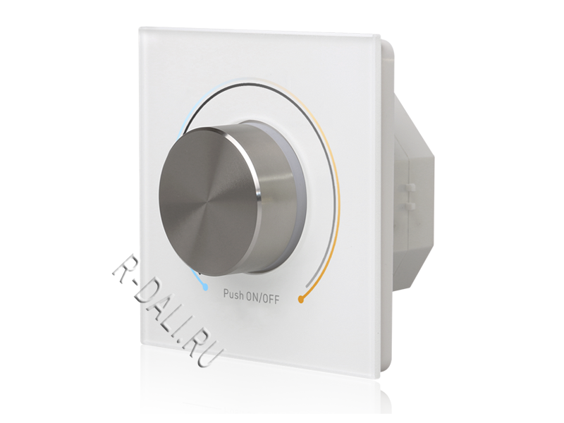 The SR-2400RB-CCT is a dual color DT8 DALI rotary master with DALI output for dimming and color temperature adjusting of luminaires or transformers with DALI interface. It is a DALI master controller designed with a built-in DALI power supply with 100-240VAC wide input which can power DALI bus while connected to AC mains. While not connected to AC mains, the rotary dimmer can be powered by DALI bus. The DALI rotary control unit is updated with a standard 4mm diameter rotary axis that is perfect to use in Europe. Each MCU can power up to 50 DALI ECGs with max. 100mA DALI output. Maximum 2 active DALI MCUs powered by AC mains and 2 passive MCUs powered by DALI bus can connect to DALI bus and control up to 100 DALI ECGs for multiple control points. Dimming solutions are easy and reliable, no DALI addressing required. The DT8 rotary master controls all devices on the circuit through broadcast. Double clicking the knob will switch from dimming to color temperature adjusting. Compatible with common European size accessories, the master controller is easy to install.