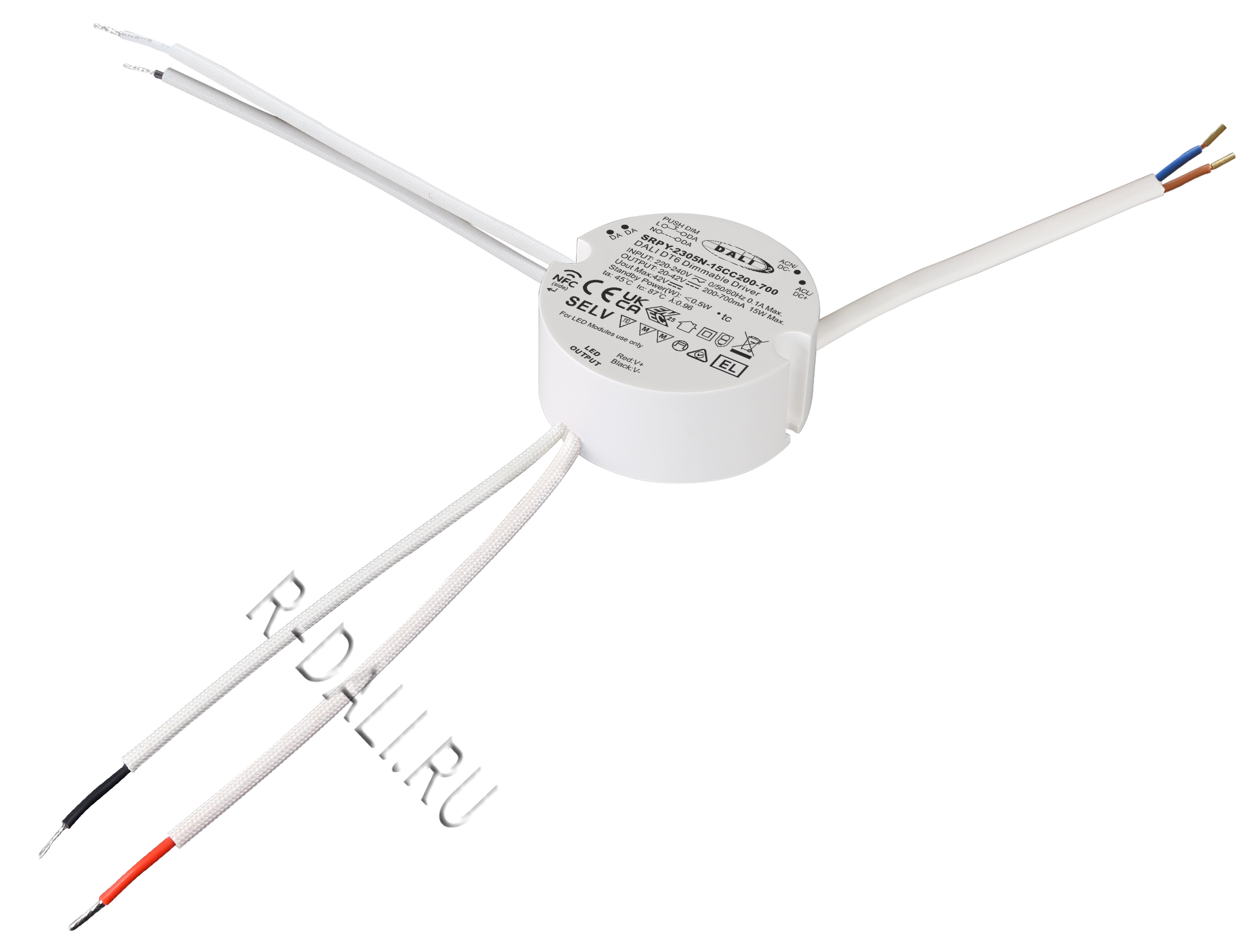 • Совместимость с любыми ведущими (master) устройствами DALI, поддерживающими команды DT6.