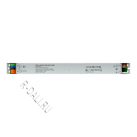 SRPL-2305iN-150CC200-1050H is a D4i DT6 certified long metal casing 150W Non-SELV NFC dimmable LED driver. It is designed with 1 channel constant current output with adjustable current from 200mA to 1050mA, which enables it to be suitable for LED lights with different current. It is designed with 220-240VAC input. It enables smooth and deep dimming to 0.1% without flickering and buzzing noise.