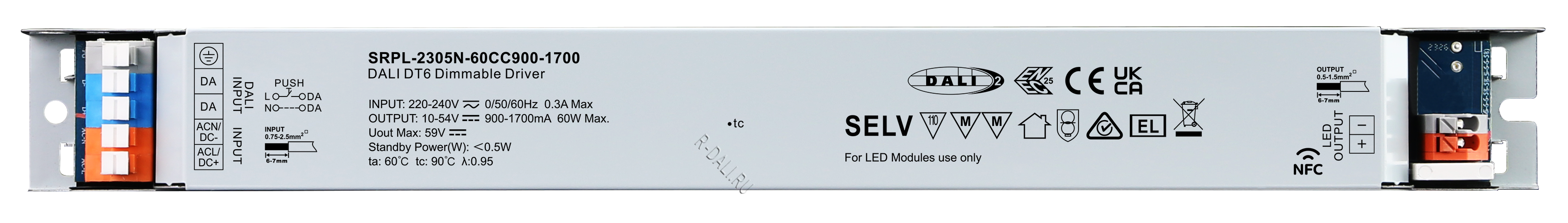 60W DALI DT6 NFC LED Driver (Constant Current) SRPL-2305N-60CC900-1700