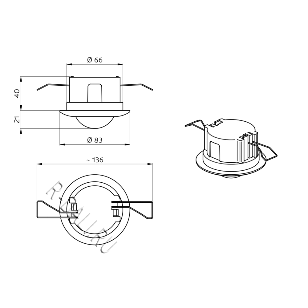 | Detection area: | horizontal 360° (Ceiling mounting) |