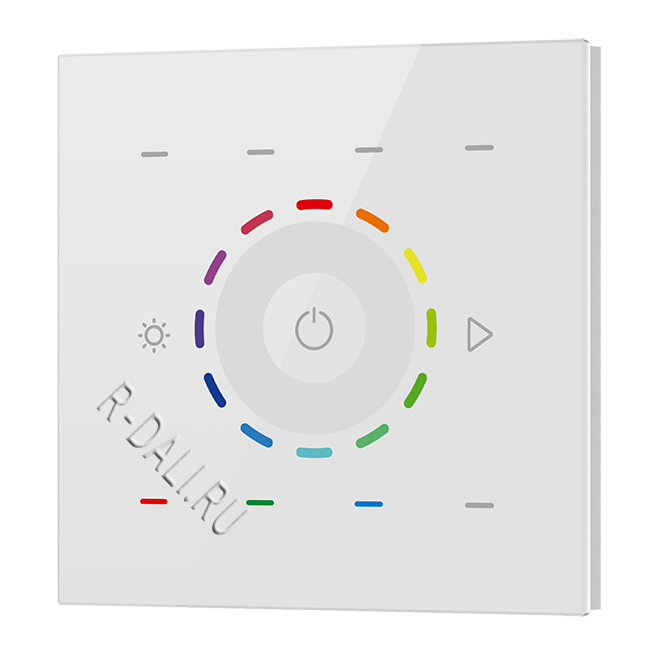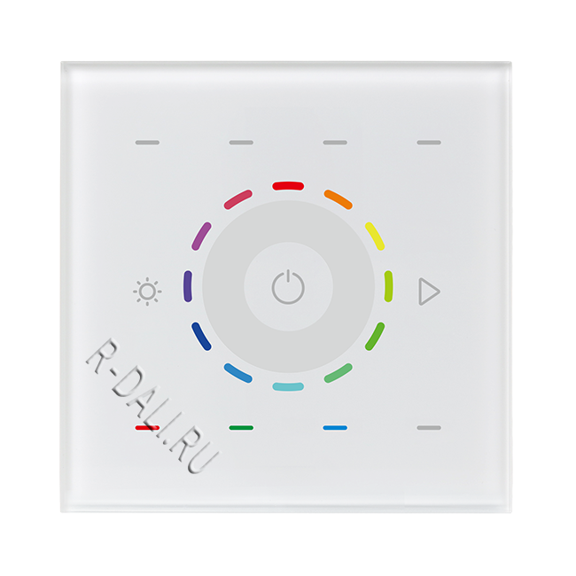 Сенсорная стеклянная панель управления DALI (белая/черная) соответствует стандартам IEC 62386, что обеспечивает совместимость с международными продуктами DALI. Устройство управляет 1 группой и 4 сценами, настраиваемыми с помощью поворотных переключателей на задней панели. Поддерживая устройства DT8 с цветовым типом RGBWAF, контроллер обеспечивает точную регулировку цвета по одному адресу DALI и оснащен 8 встроенными цветовыми последовательностями.
