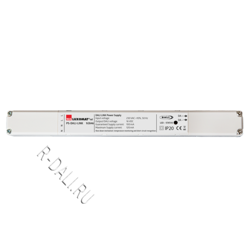 For example, 25 DALI luminaires and 6 DALI-LINK control devices (multi-sensors or push-button interfaces) can be connected to the power supply.