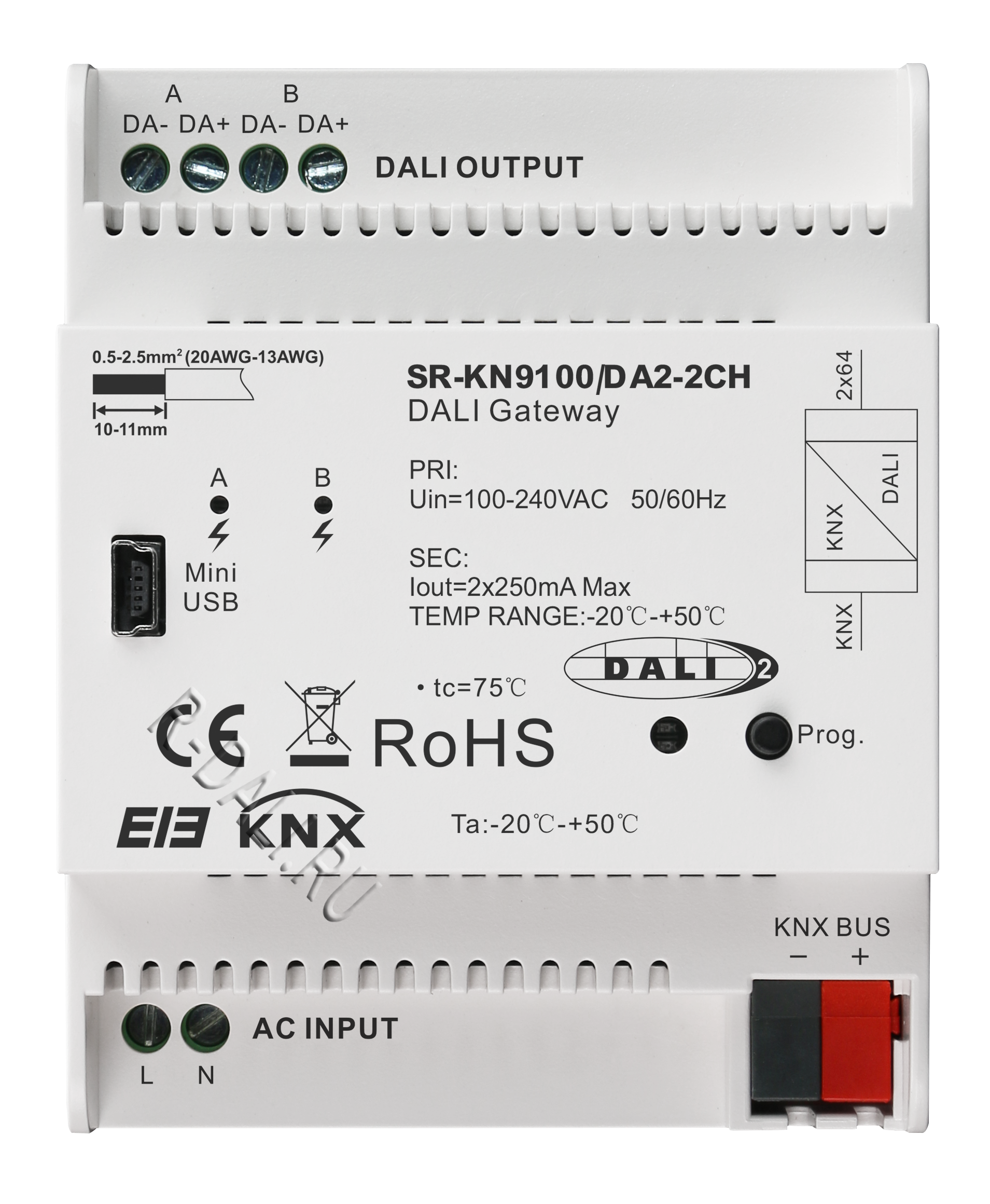 KNX to 2 Channel DALI Gateway SR-KN9100-DA2-2CH