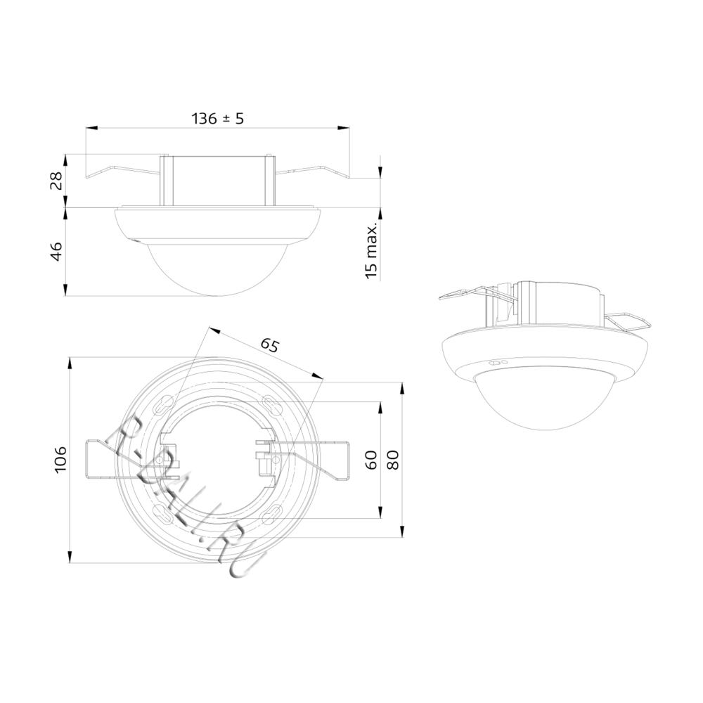 | Detection area: | horizontal 360° (Ceiling mounting) |