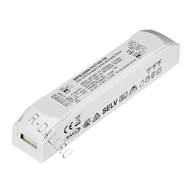 Благодаря встроенному интерфейсу DALI-2/Push это устройство DALI DT8 обладает высоким коэффициентом мощности и КПД. Этот диммируемый драйвер имеет максимальную выходную мощность 7 Вт. Обладая блоком питания Класса II и полностью изолированным пластиковым корпусом, драйвер может включать/выключать и диммировать светодиодные светильники. Он характеризуется отсутствием мерцания и глубоким диммированием до 0,01%. Кроме того, он имеет функцию сообщения об ошибках. Его степень защиты — IP20, что делает его подходящим для применения в светодиодном освещении внутри помещений. Гарантия — 5 лет.